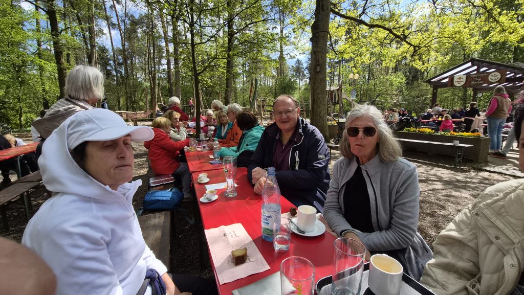Nach kurzen Überlegungen übernahmen einige von uns die Führung und zeigten der Gruppe wo es lang geht. Kreuz und quer durch den Wald kamen wir nach ca. 7 km pünktlich und bei bester Laune im Naturfreundehaus an. Bei gutem Essen und Getränken besprachen wir den weiteren Ablauf des Tages. Da das Naturfreundehaus einen tollen Außenbereich hat und die Sonne raus kam hatten wir einen neuen Plan. Mit den Inhabern der Gaststätte s´ Haisl abgesprochen durften wir unseren mitgebrachten Kuchen dort genießen.